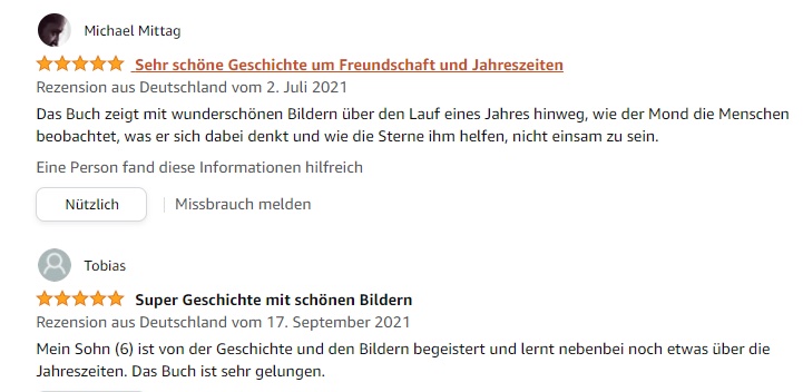 Titel: Momo der Mond findet sein Glück, Autorin: Sandra Unfer, ISBN: 375340358X, EAN: 9783753403588, Empfohlen von 3-7 Jahren, 2. Auflage, 24 Farbabb., HC gerader Rücken kaschiert, 19,5 cm / 27,6 cm / 0,6 cm (B/H/T), Books on Demand, 8. Mai 2021 – gebunden – 24 Seiten.